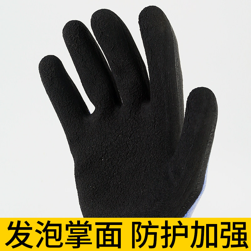 Latex foam gloves labor insurance wear-resistant elastic trumpet ladies work dipping glue non-slip site protection breathable work