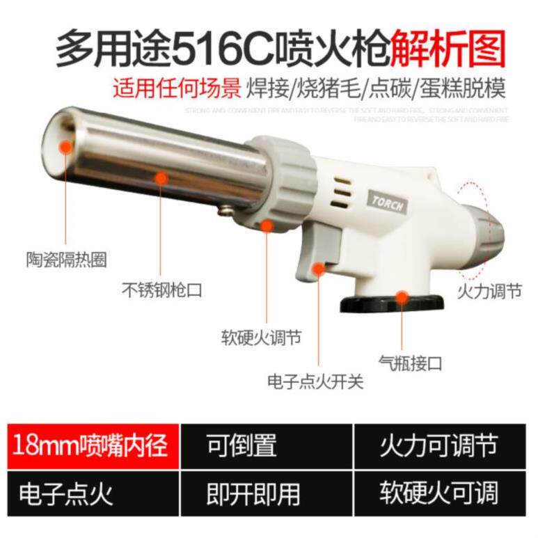 Spray gun Copper tube welding wire Electronic welding barbecue flame flame torch head Handheld high temperature lamp baking portable hand