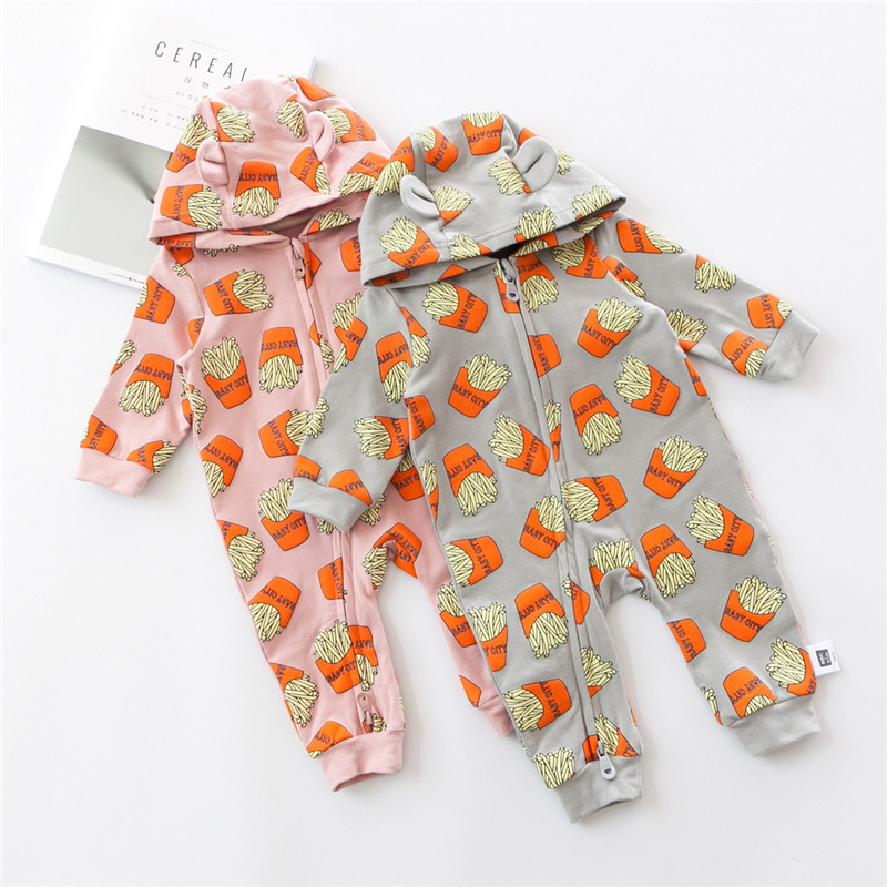French Jacadi baby even swarm clothes spring and autumn long sleeves baby khaone fries printed even hat-laced full cotton crewback