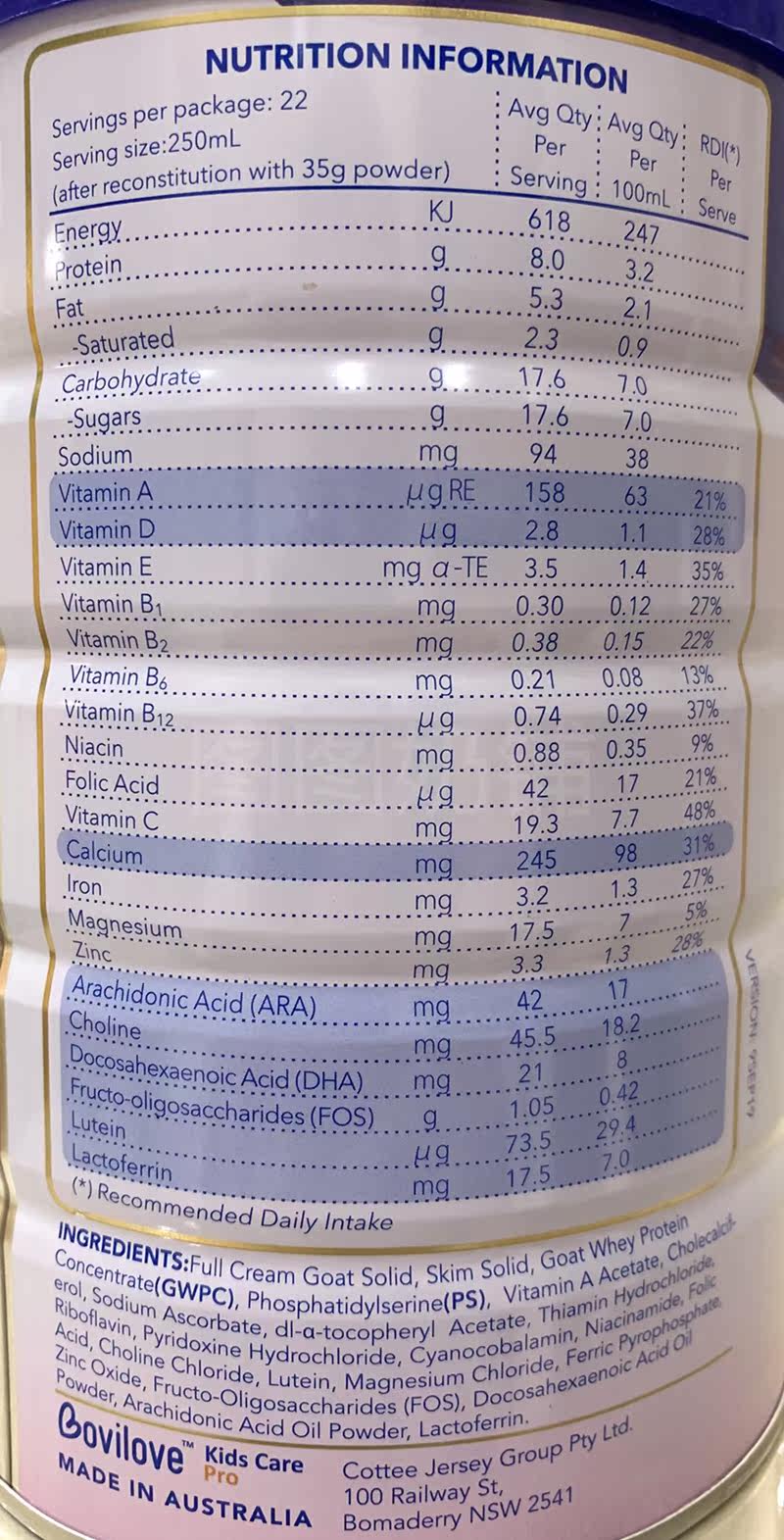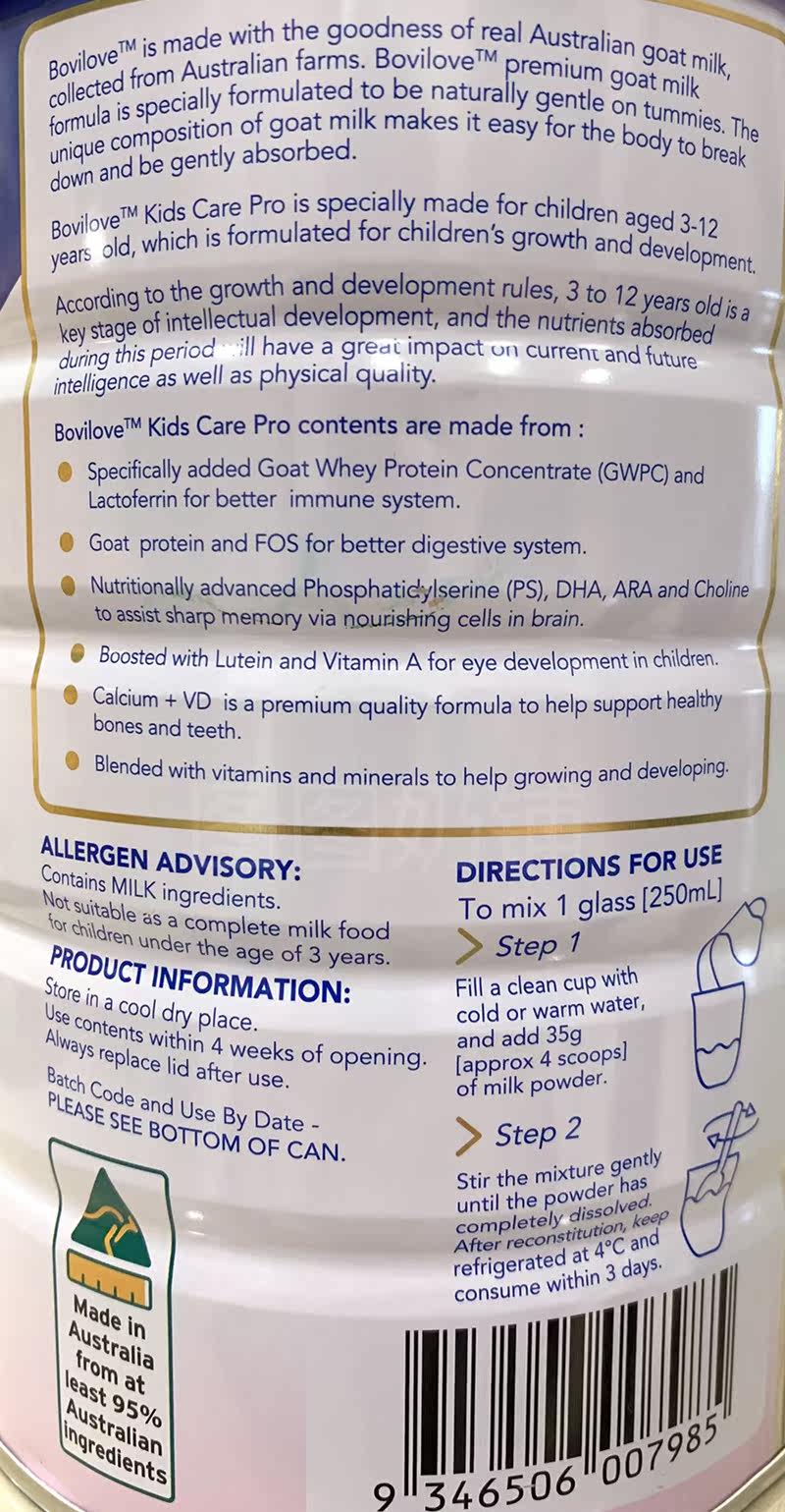 Bovilove Australian Bovilove Lactoferrin Children's Goat Milk Powder 800g 3 years old~12 years old contains 19 kinds of formulas