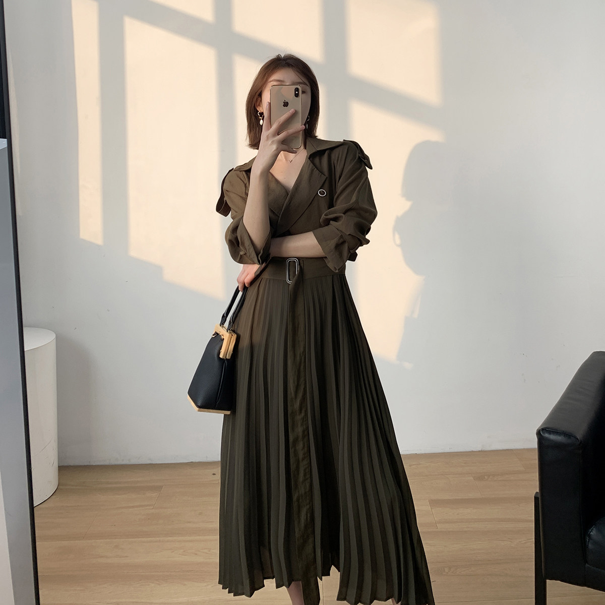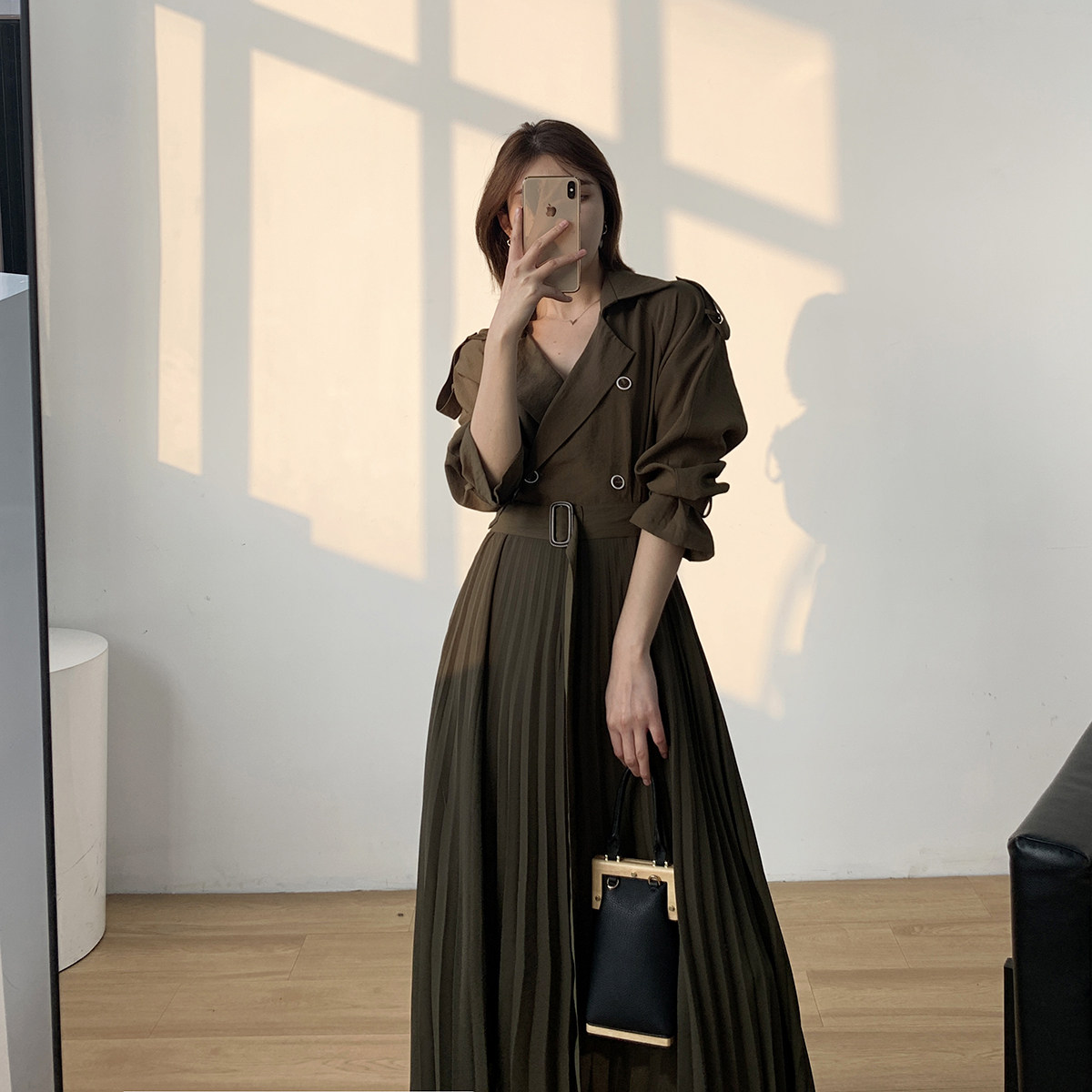 Goothic Custom Woman Dress 2022 Autumn Dress New Foreign Dress Woman Temperament Closeout Long Sleeve Mid large Swing Wind Dress