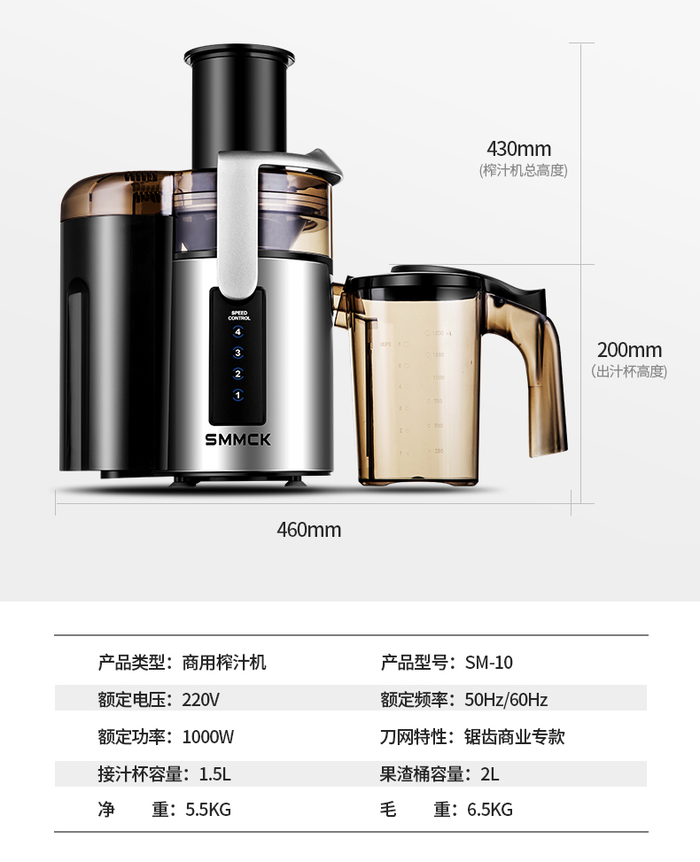 SMMCK juicer commercial juice shop juice machine fruit shop residue juice separation milk tea shop large-caliber restaurant use