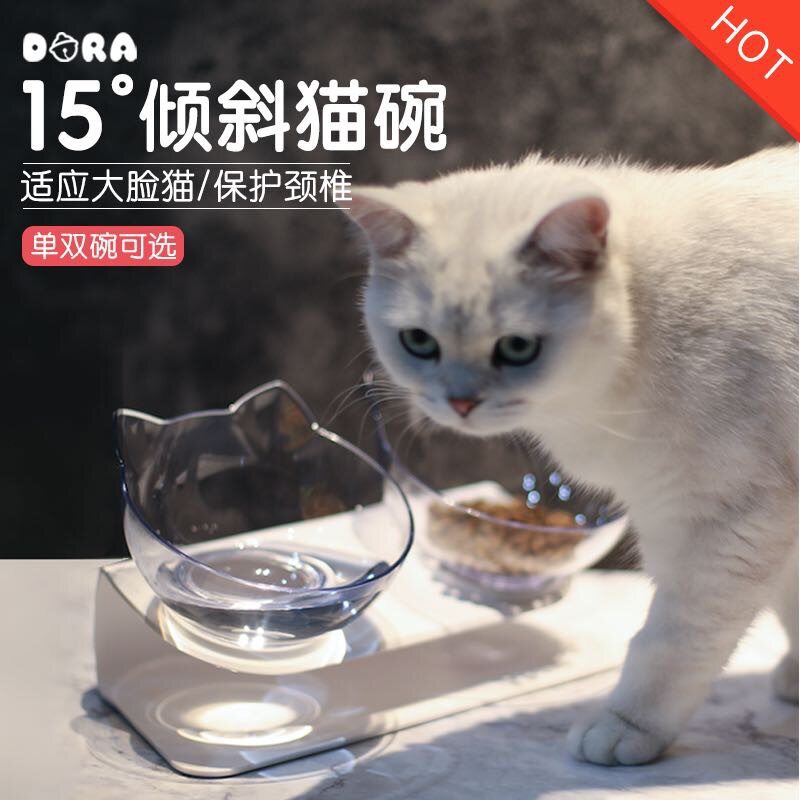 New Red Cat Bowl Food Grade PC tilted neck cat bowl can be easily cleaned pet bowl