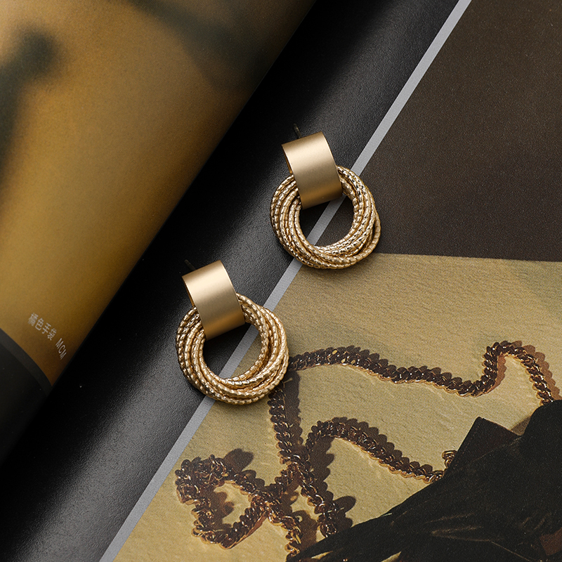 VEGA CHANG matte gold circle ear nails female metal geometry wrapped around hollow earrings