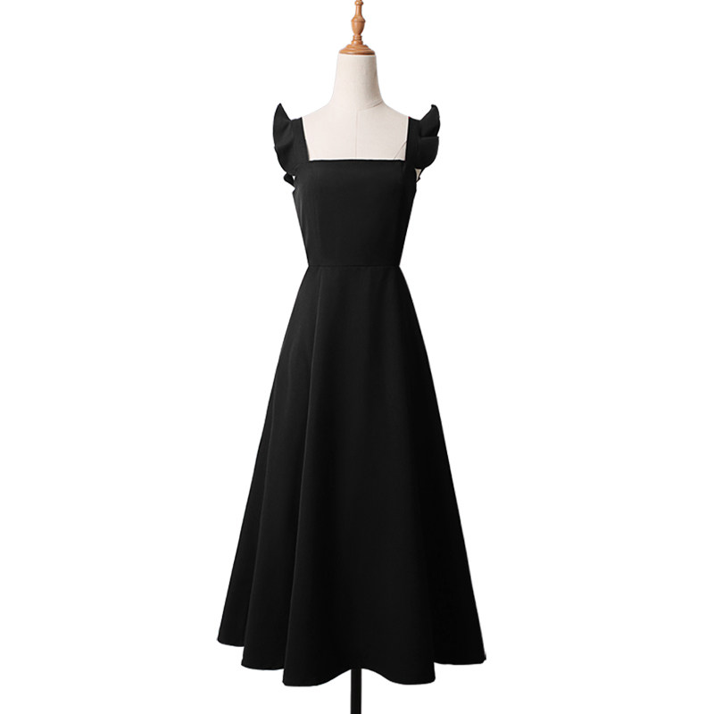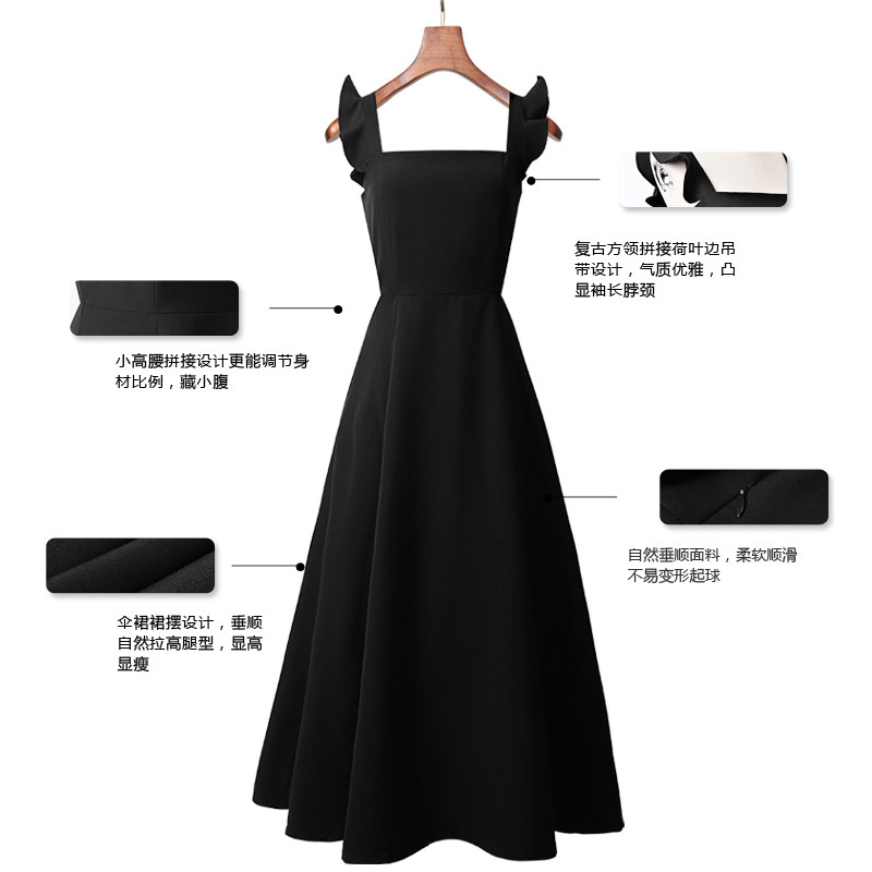 1 4-inch sleeves wrench sleeves dress women Summer students French style retro long dresses Fairy Skirt Herbene Wind Harnesses Small Black Dress