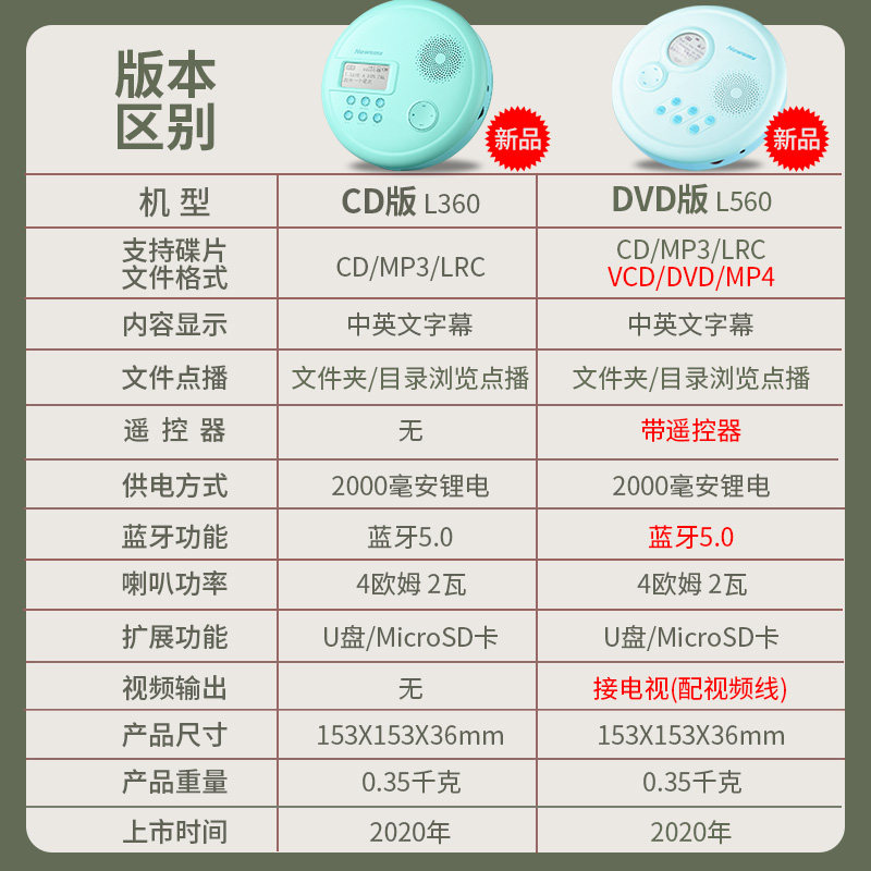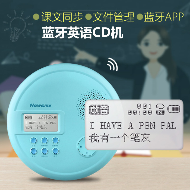 Newman English CD player portable CD player CD player CD player album player Junior High School Primary School students Children home learning to play MP3 disc Bluetooth DVD