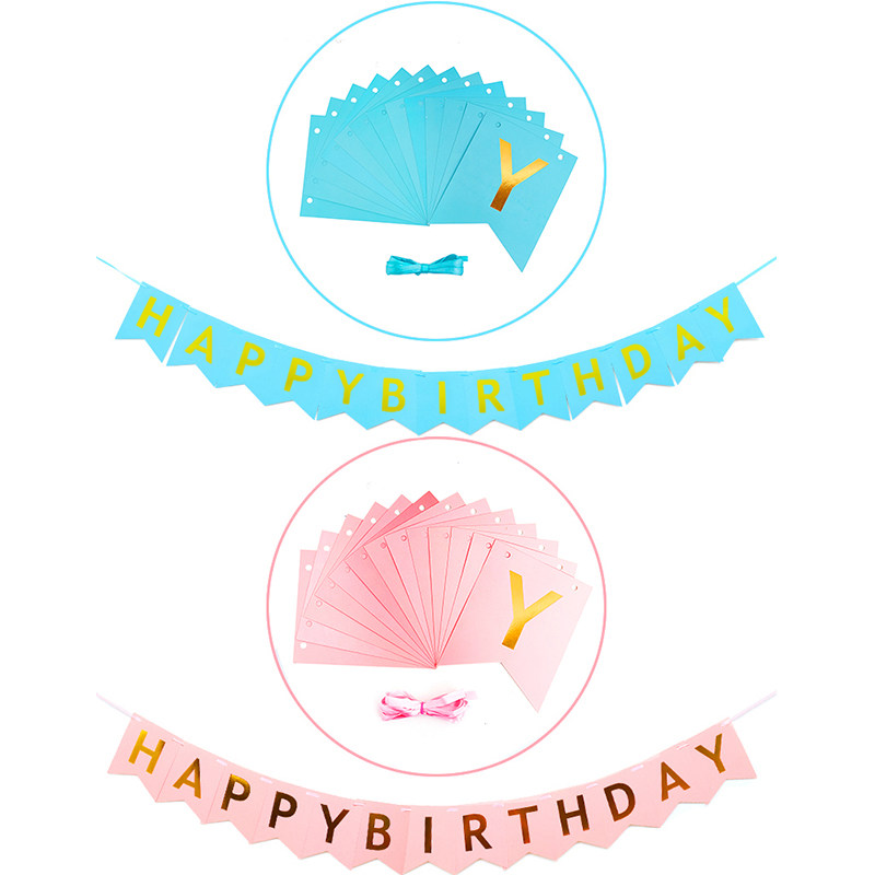 Birthday decorations Birthday venue decoration Dress up Bunting Fishtail flag Blue Pink flag Hanging flag Birthday pull flag