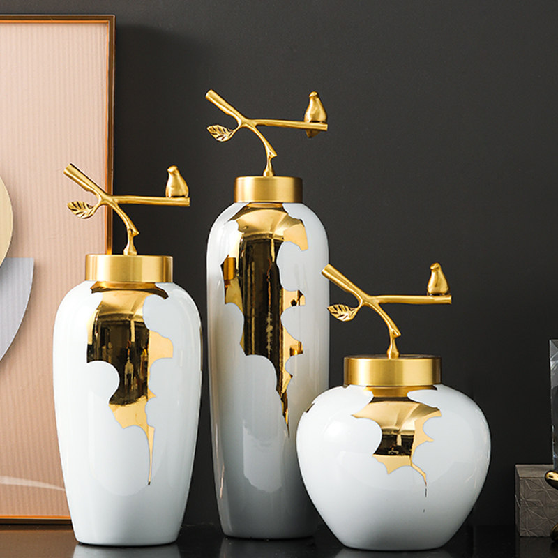 Jingdezhen ceramic vase decoration light luxury decoration new Chinese-style living room entrance hotel lobby club table flower arrangement