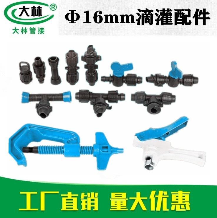 Bypass valve accessories 16mm drip irrigation belt straight-through three-way patch type water-saving equipment Dropper drip belt connector