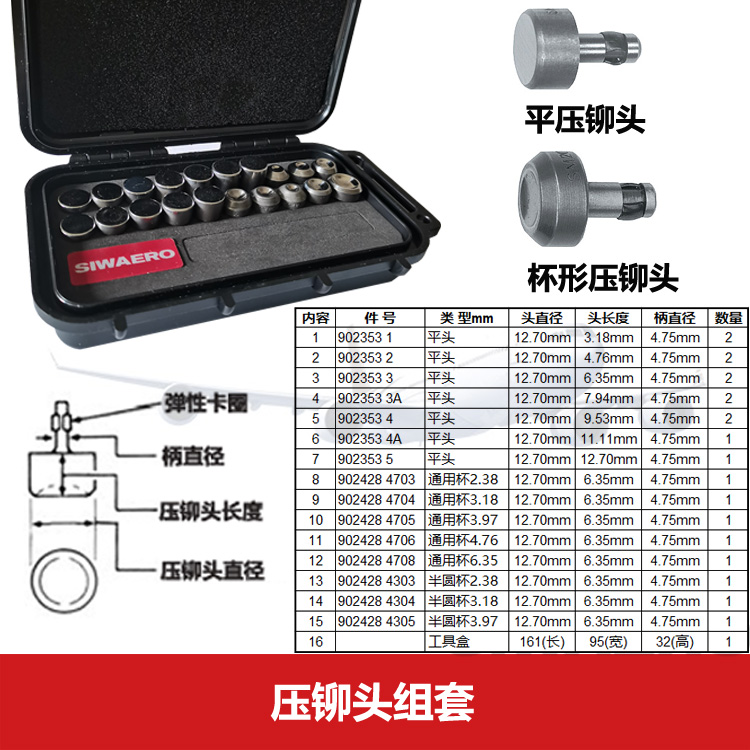 Aviation single tandem cylinder C-shaped bow arm pneumatic pneumatic pressure hammer riveting shell machine jaw cup flat nest die head set