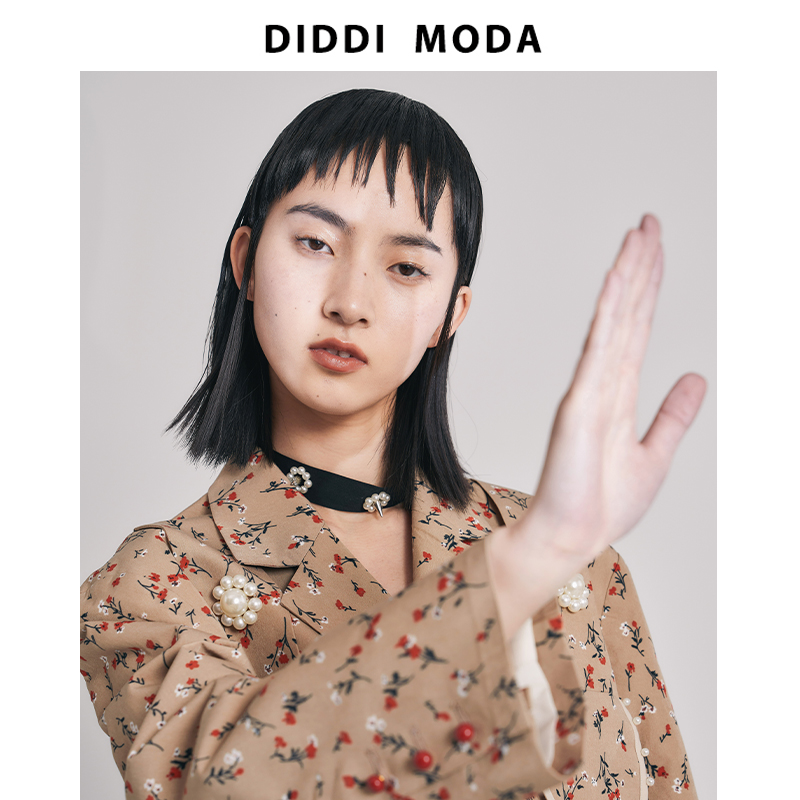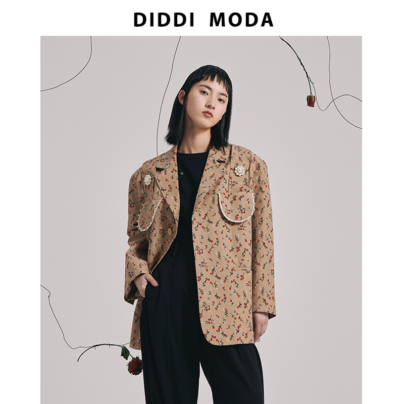 DIDDI original design card with its colour printed suit female handmade pearl retro-ancient loose coat tide