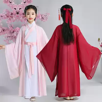 Children's Hanfu Knight style female Chinese style cross-collar slant ancient style elegant red costume waist skirt suit