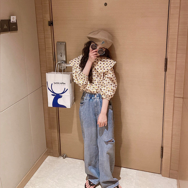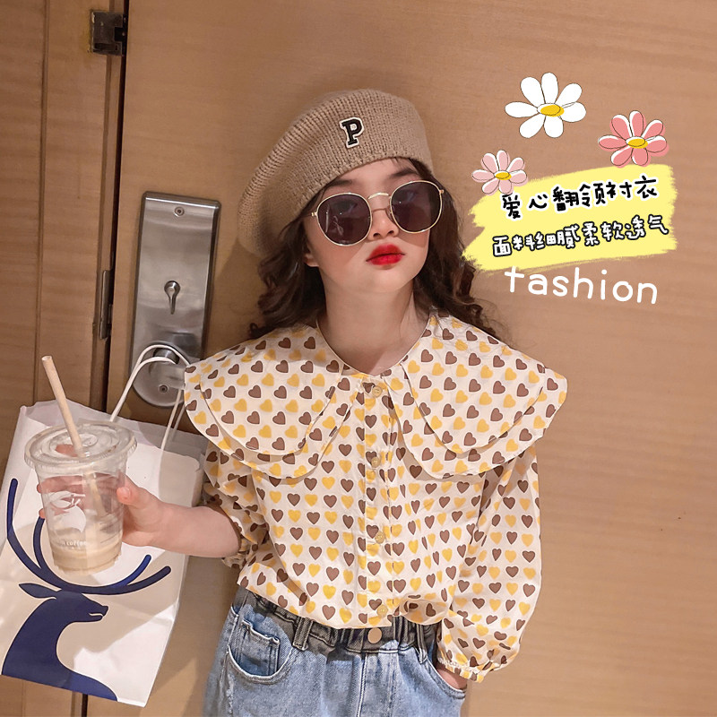 Girl Shirt Spring Autumn Money 2023 New Children Autumn Clothing Trendy Ocean Gas Great Boy Baby Bo Point Long Sleeve Shirt-Taobao