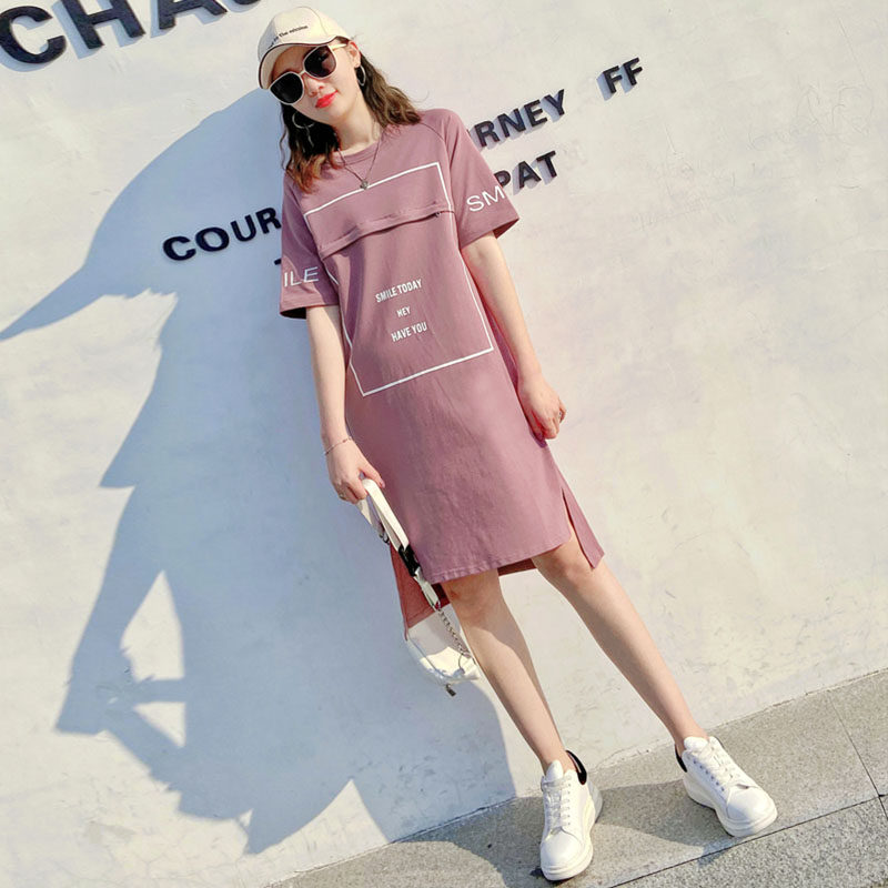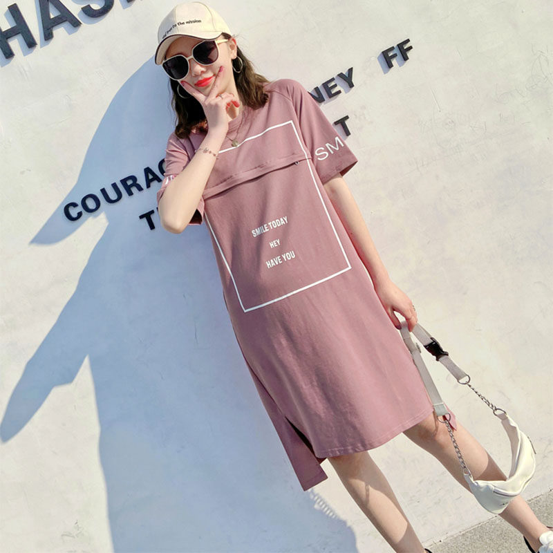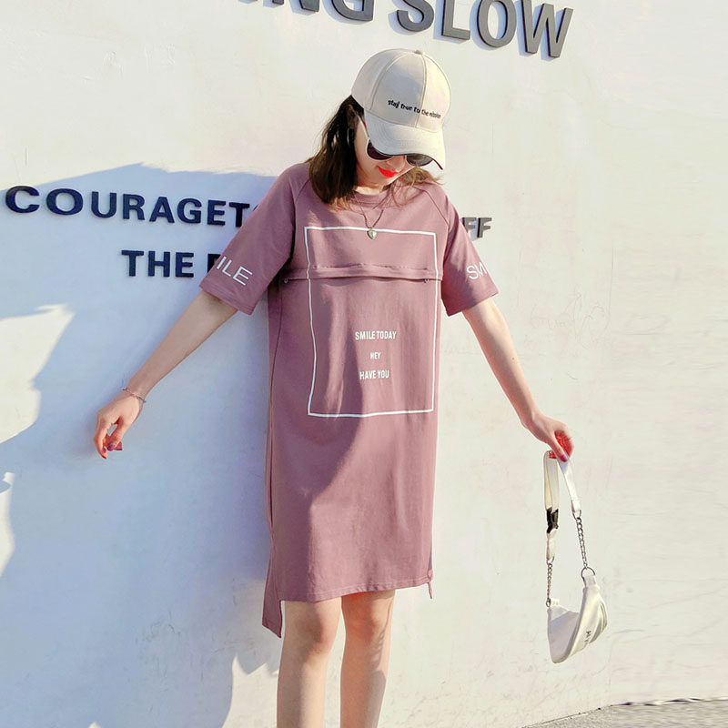 Nursing clothes out for summer large size Fashion postpartum Breast-feeding Clothes Short Sleeve T-shirt Horseradish medium long version of the blouse summer