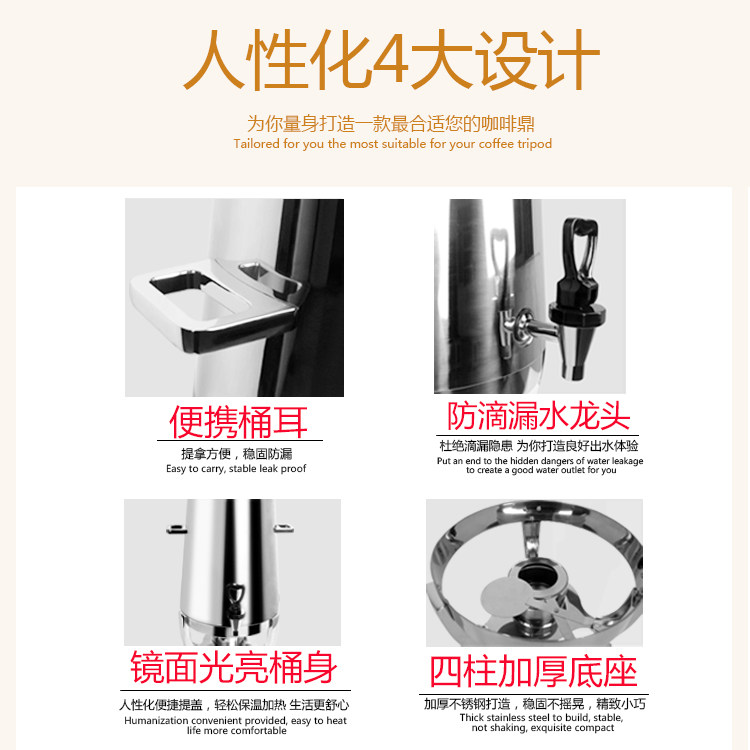 Stainless steel coffee tripod 13L self-service coffee bucket self-catering beverage tripod milk juice tripod can be installed with electric heating