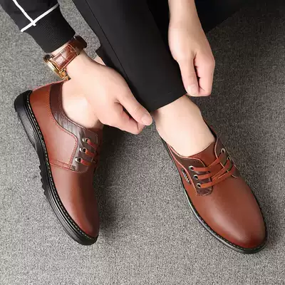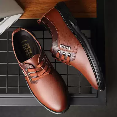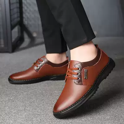 Leather shoes men's British inner height men's leather lace-up all-match Korean version of casual business trendy shoes summer dad men's shoes