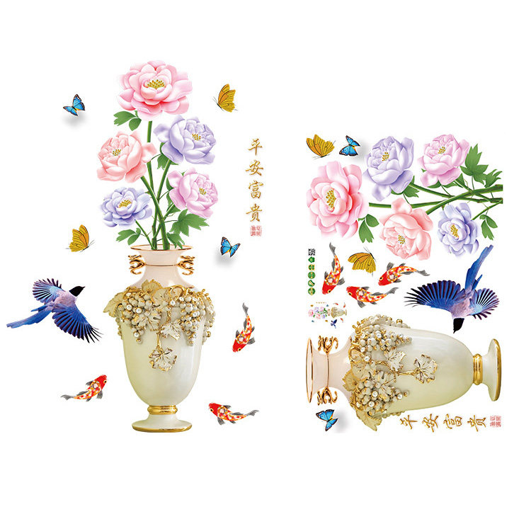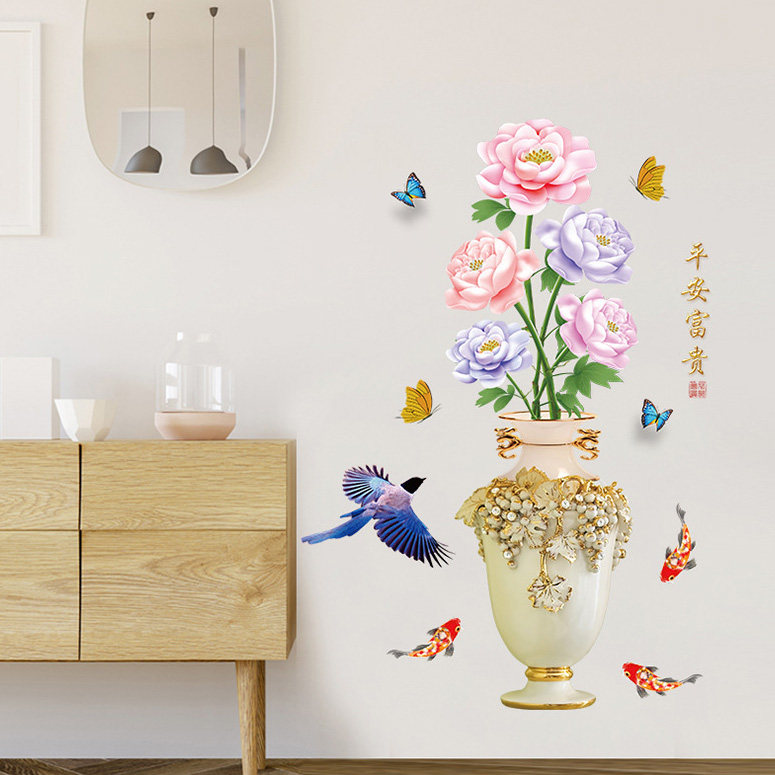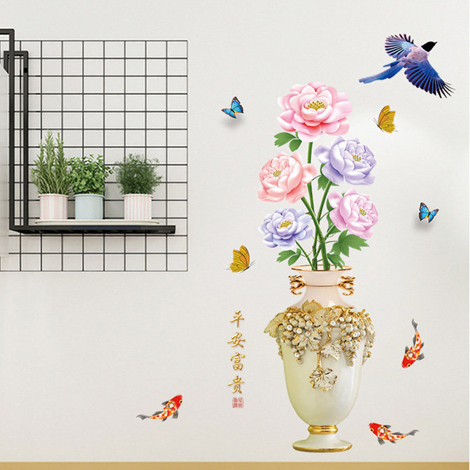 New China Wind Vase Wall with Ping An Desert Rose Bottle Orchid Genguan Bedroom Dining Room Dining Room Decoration Sticker