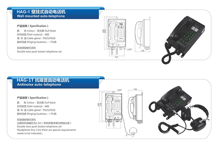 Huanyan HAG-1T Marine Program Control Automatic Telephone 4 Holes Wearing Headphones Wall-mounted Dual Audio Sound Force Telephone