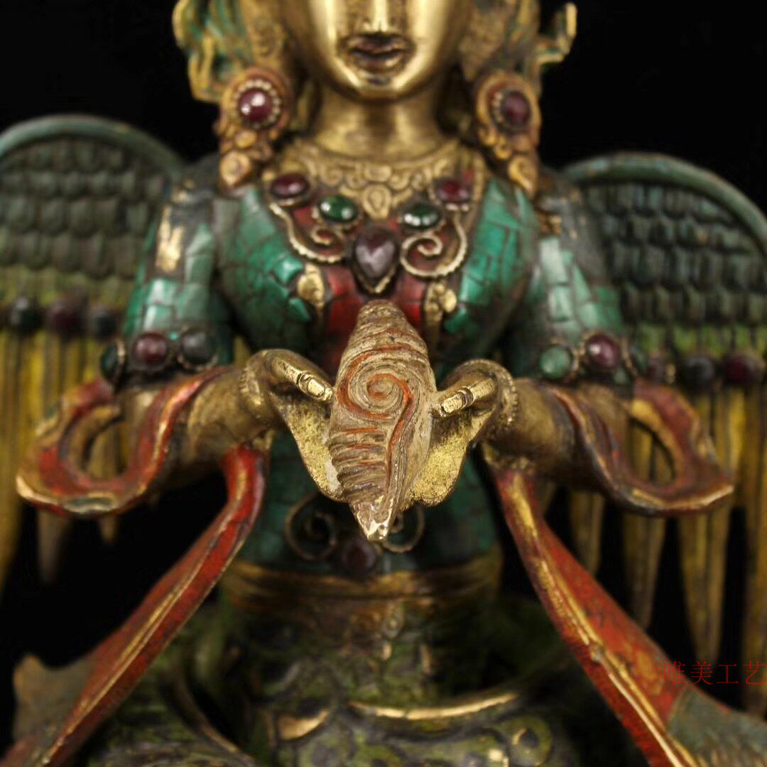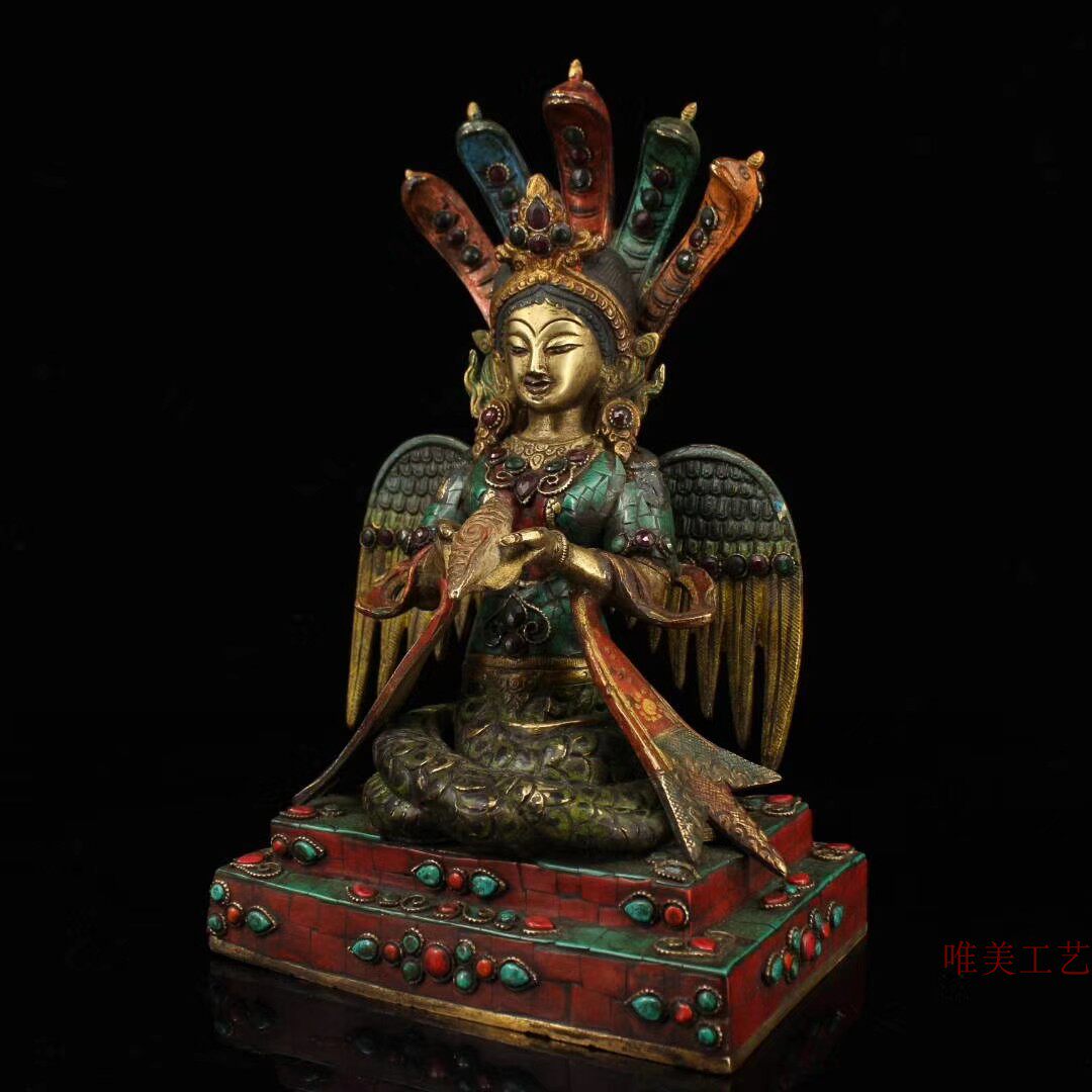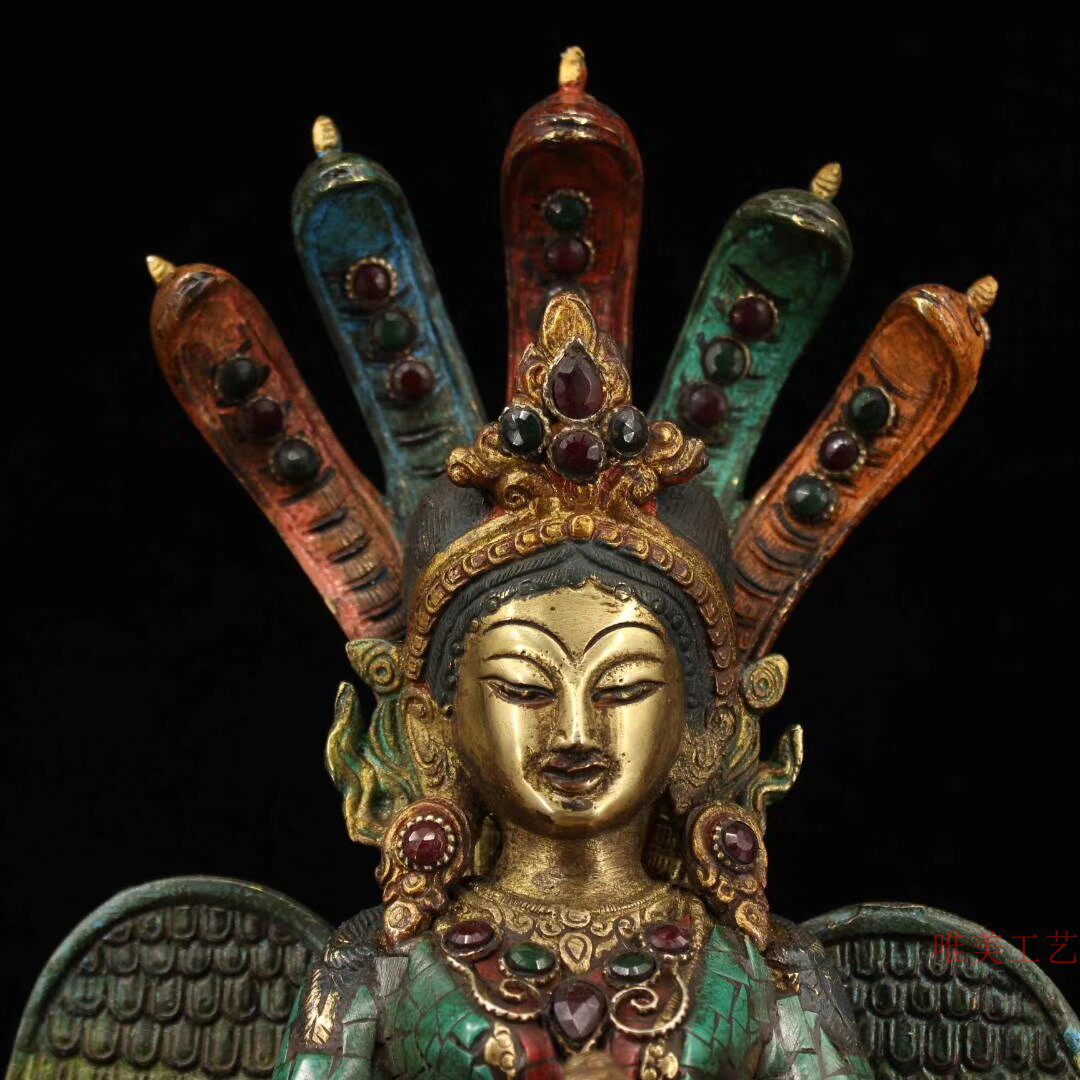 Gu Yixuan old pure copper handmade inlaid gemstones painted gold dragon tree bodhisattva