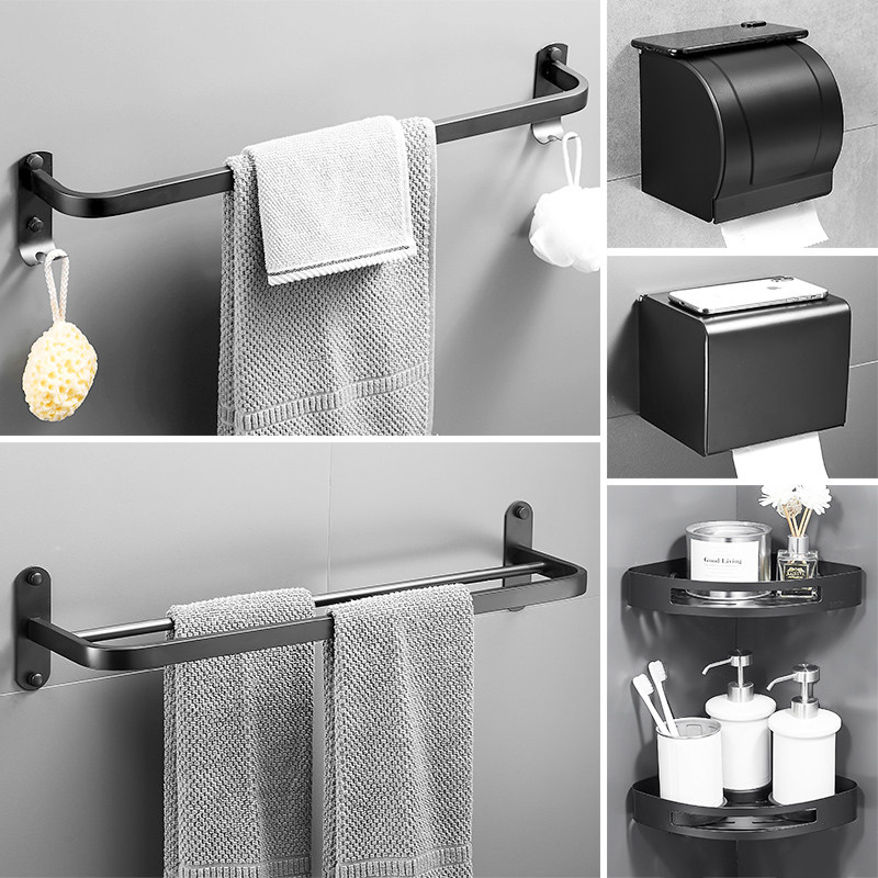 304 Black Stainless Steel Towel Rack Free of perforated Makeup Room Shelve wall-mounted bath towels Bathroom Pendant Suit