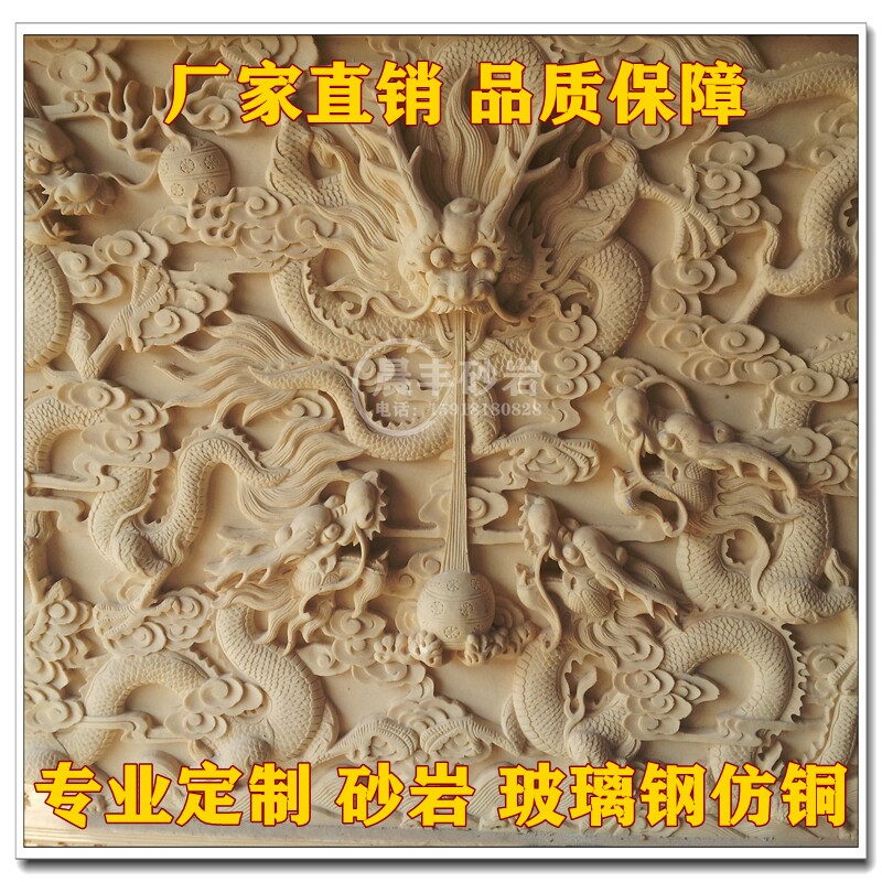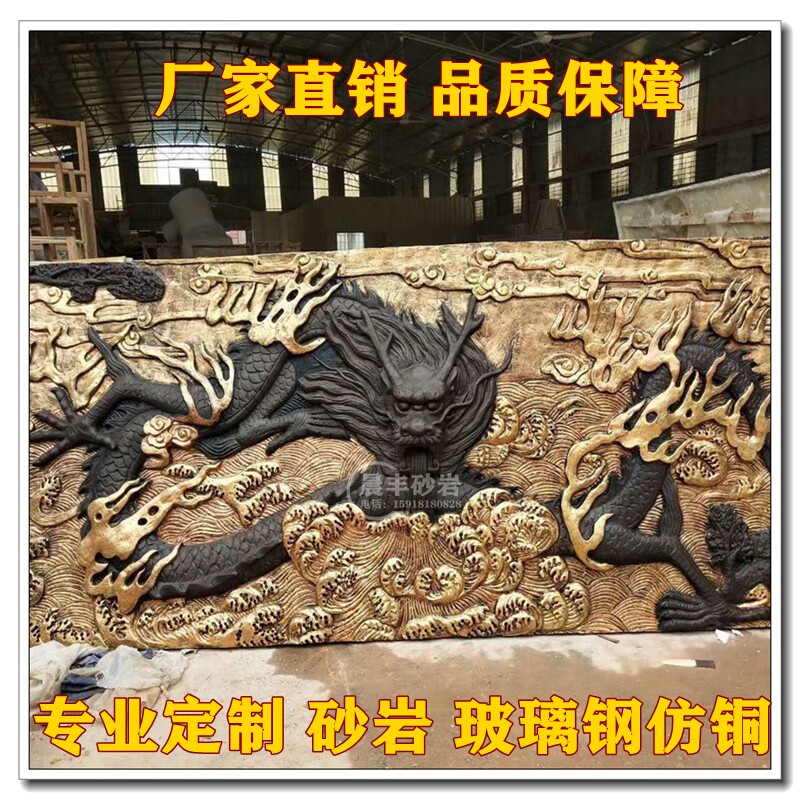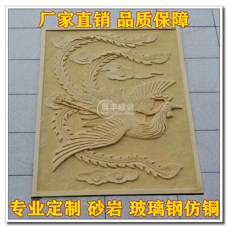 Sandstone Relief Mural Customized Sandstone FRP Imitation Copper Outdoor Red Culture Garden Campus Dragon and Phoenix Relief