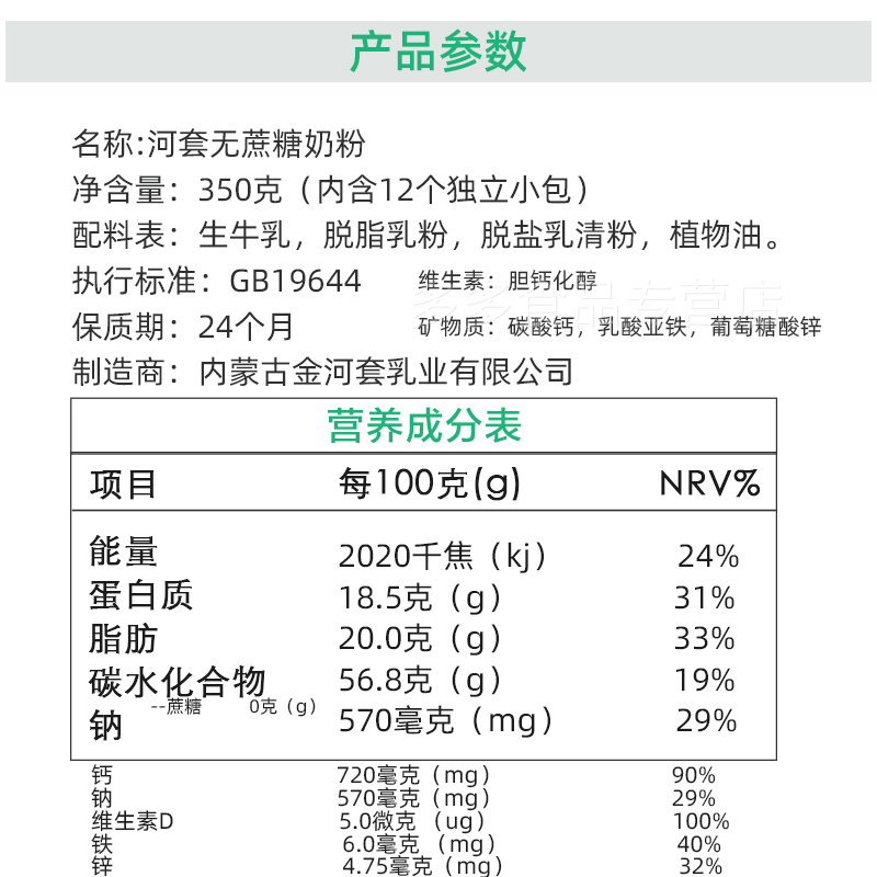 Hetao sucrose-free milk powder 350g x 1 bag set meal Hetao sucrose-free milk powder 350g x 2 bags set meal