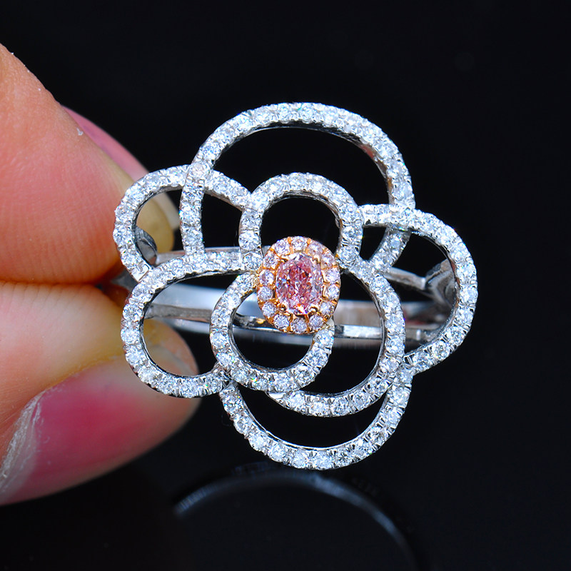Pink diamond ring main stone 0 12 carats natural cushion-shaped pink diamond ring women's luxury group set 98636