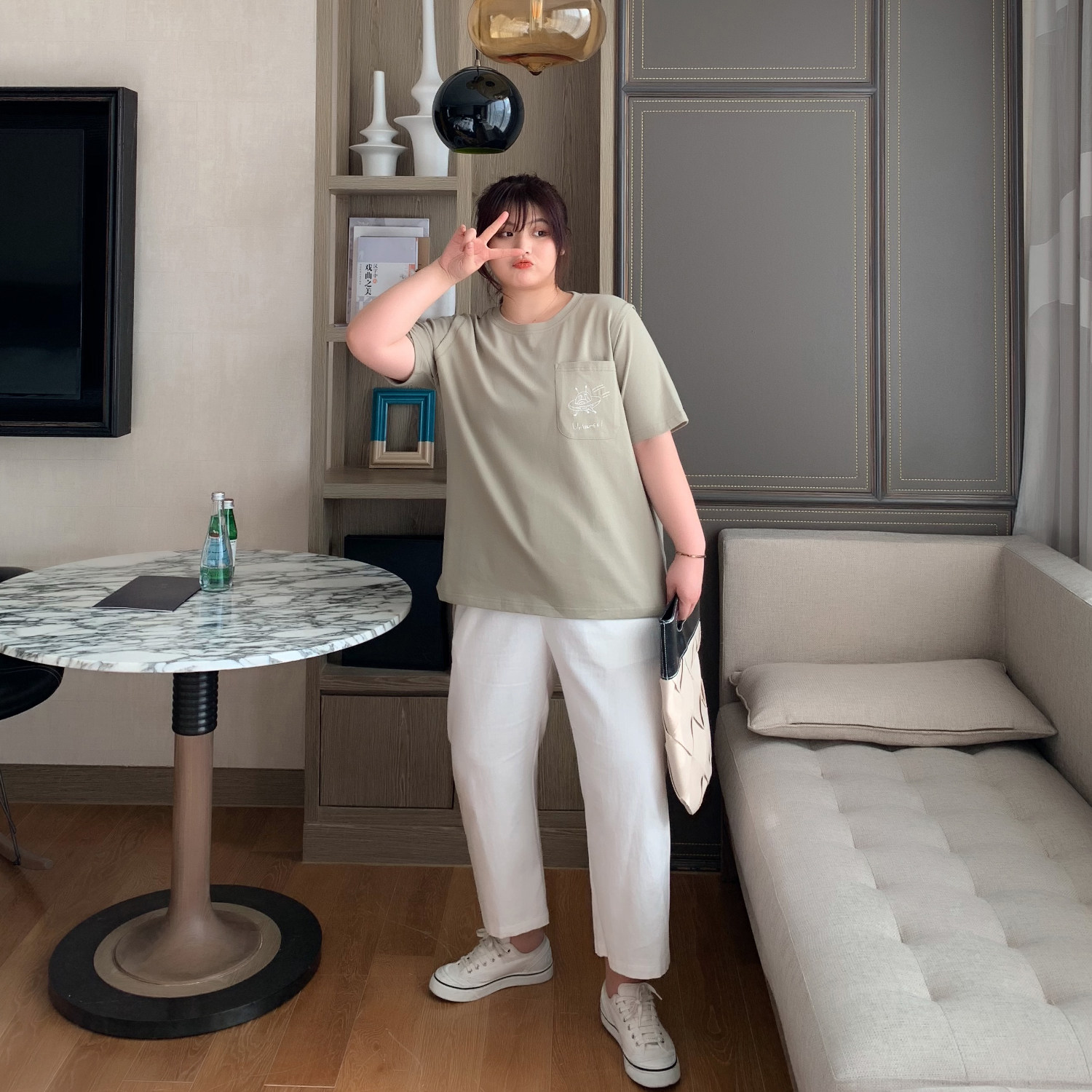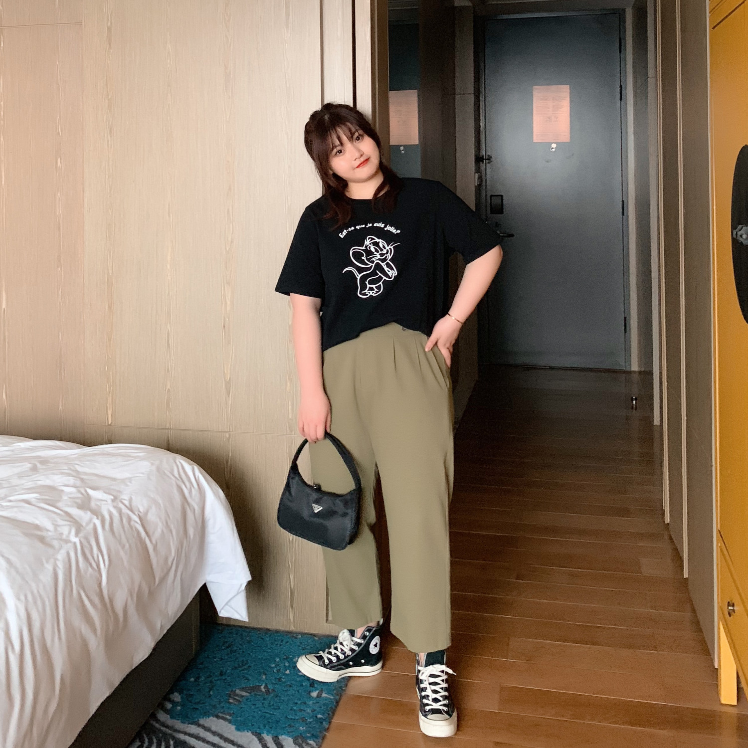 ALIN custom large size women's high waist casual pants fat mm 200 catties spring and autumn cover the crotch and legs thick straight loose pants