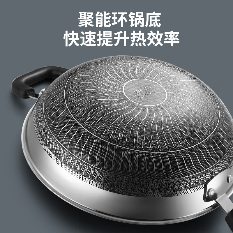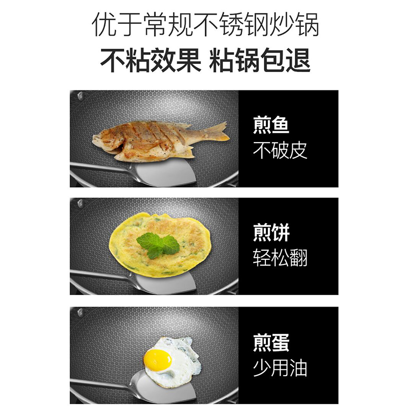 German smoke-free no-stick frying pan without coating 304 stainless steel domestic frying pan Gas applicable