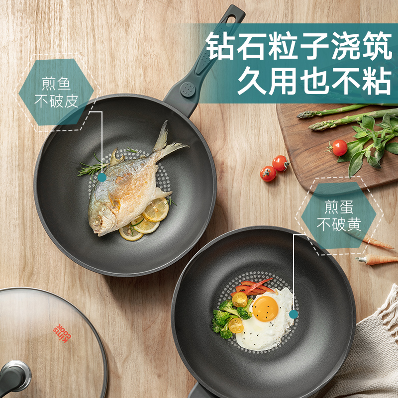 Korean kimscook diamond wok non-stick pan smoke-free home wok pan pan induction cooker universal pot