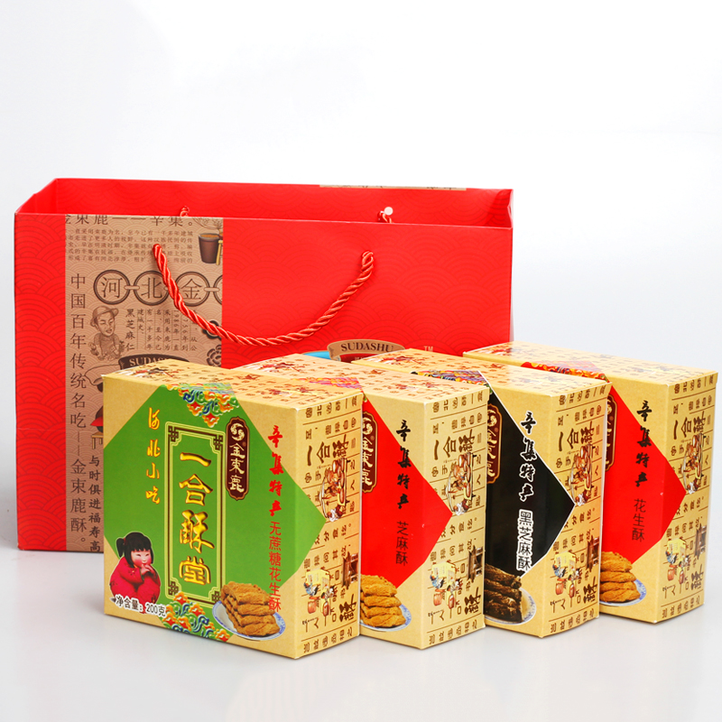 Peanut crisp 200g*4 box gift bag Sesame cake 200g*4 box gift bag Black sesame cake 200g*4 box gift bag Xylitol peanut cake 200g*4 box gift bag