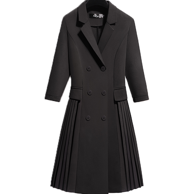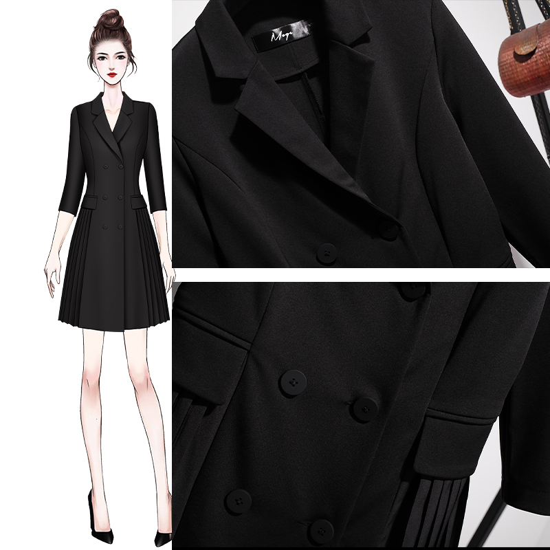 Black double-row buttoned suit foreign dress Senior Sister receives waist display slim temperament 100 pleats small black dress children spring and autumn