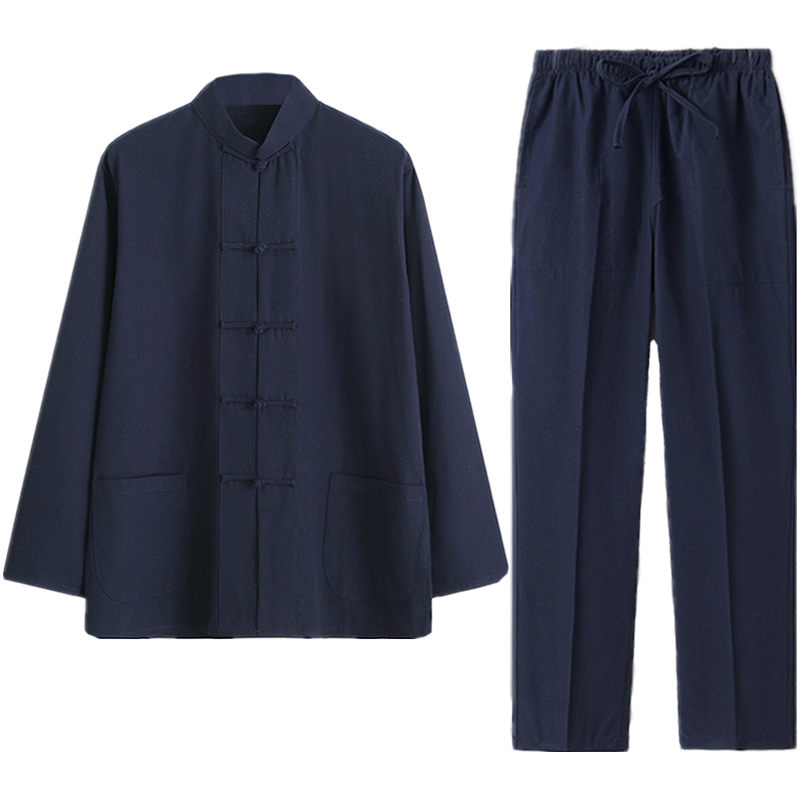Pure cotton Tang suit Men's style suit in old age full cotton long sleeve shirt Spring and autumn performance Practicing Martial Arts School of Tea Costume Residence