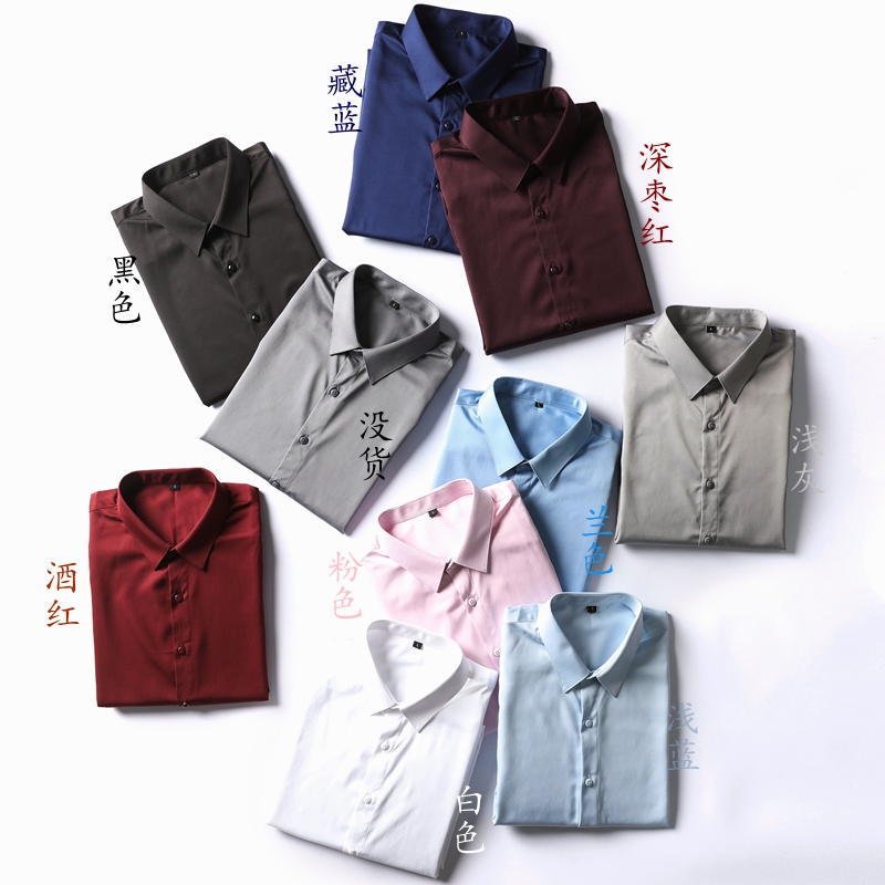Multi-color long sleeve shirt men's 2020 autumn and winter new non-ironing mercerized fabric slim handsome wild solid color shirt