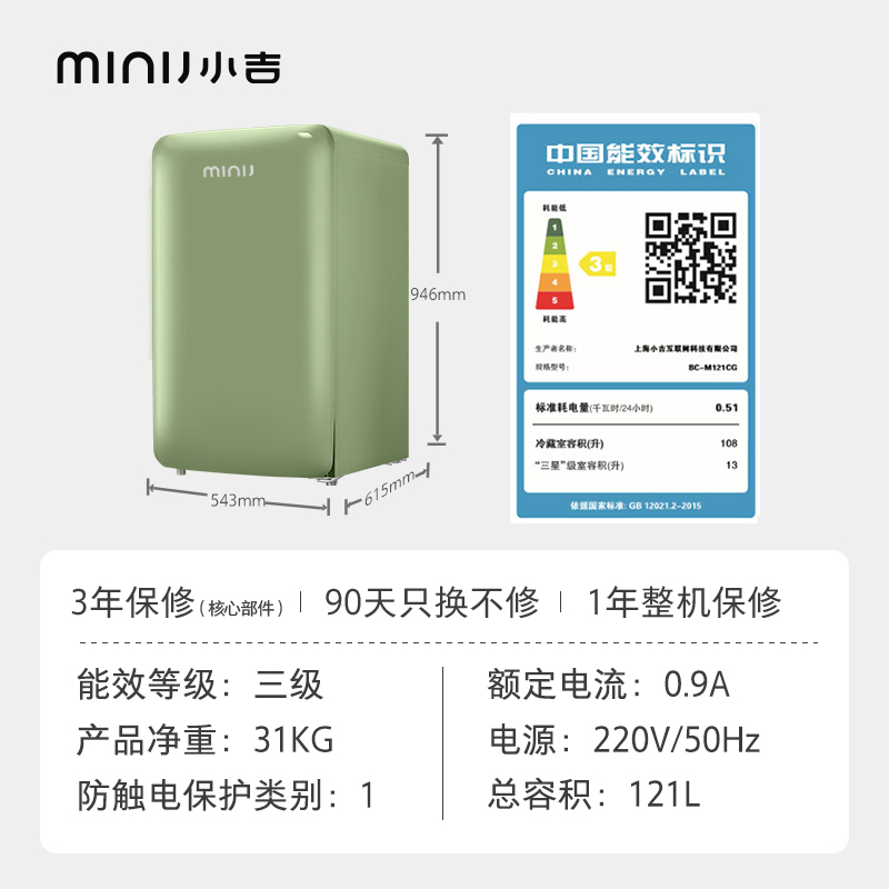 minij Xiaoji BC-121CG Retro Refrigerator Home Small Mini Bedroom Office Refrigerated Freezing