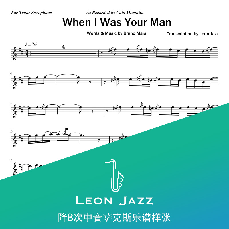 When I Was Your Man Saxophone Martian staff score accompaniment