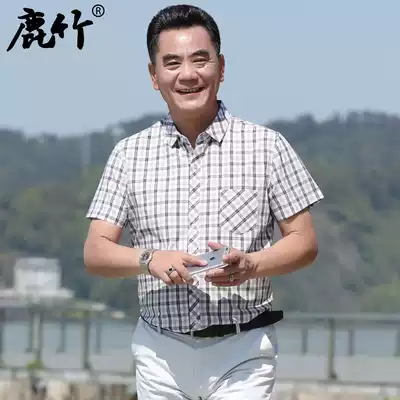 Deer bamboo men's summer short-sleeved shirt middle-aged and elderly men's bamboo fiber plaid shirt dad lapel clothes