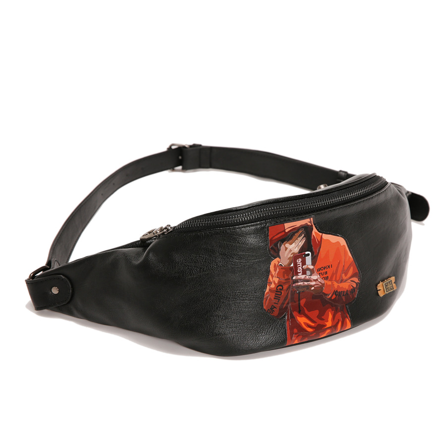 Original innovative men's and women's fashion leather breast bag shoulder bag small shoulder bag personality pattern chest bag tide brand
