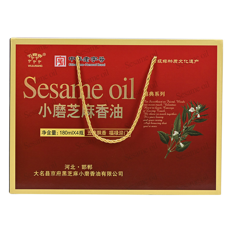 Five deer fragrant white sesame small grinding and fragrant oil gift box 180ml * 4 bottles of large famous government oil and oil Hebei Handan speciality