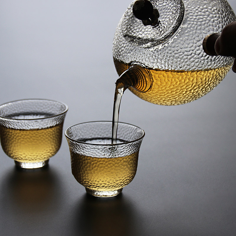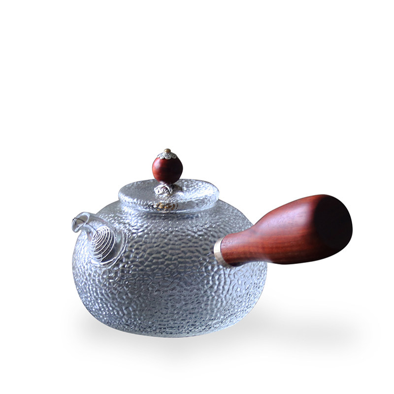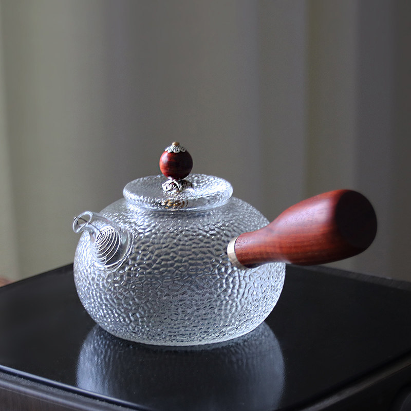 Jiu Lei thickened hammer pattern glass teapot solid wood side handle teapot high temperature transparent flower teapot household tea set