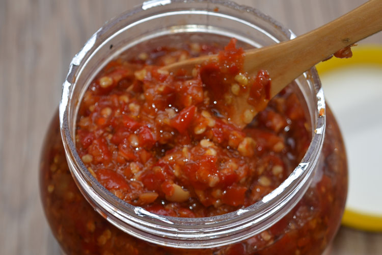 Bright red peppers Edible salt Garlic ginger tempeh Liquor edible vegetable oil