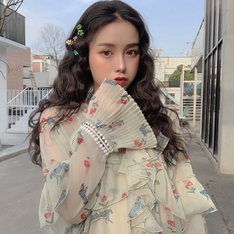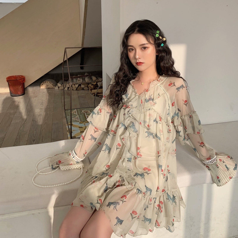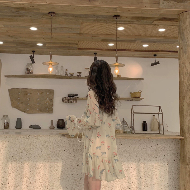2021 spring and summer new French retro beach skirt super fairy forest sweet chiffon floral dress