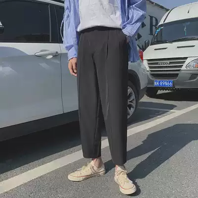 Fat casual pants men's loose wide legs ankle-length pants autumn plus fat plus size Haren pants straight tube stretch long pants