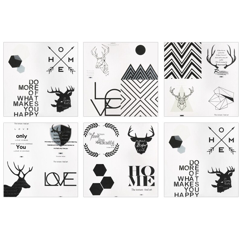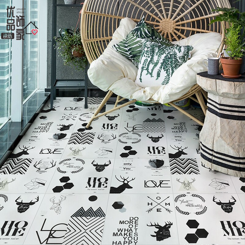 Nordic Style Deer Head Letters Black & White Geometric Flowers Brick 300X300 Kitchen Balcony Porcelain Floor Tile Makeup Room Wall Brick