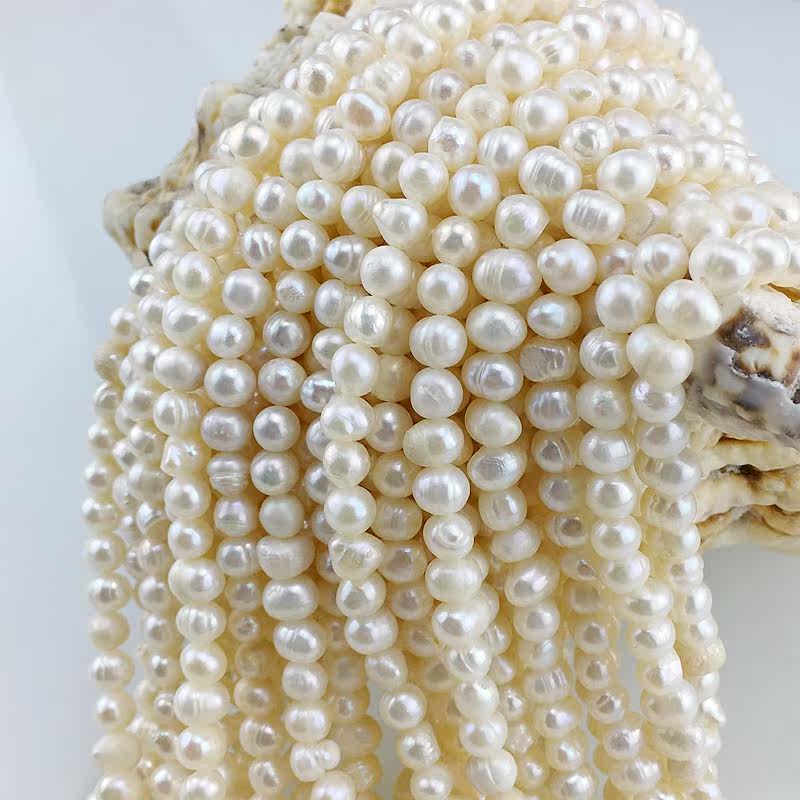 5-6mm white freshwater pearl bright light flawless punch near round semi-finished bulk pearl necklace diy accessories