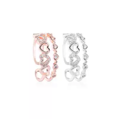 Japanese and Korean temperament alloy diamond-encrusted color-retaining ring Fashion unisex couple wild double-layer open love ring