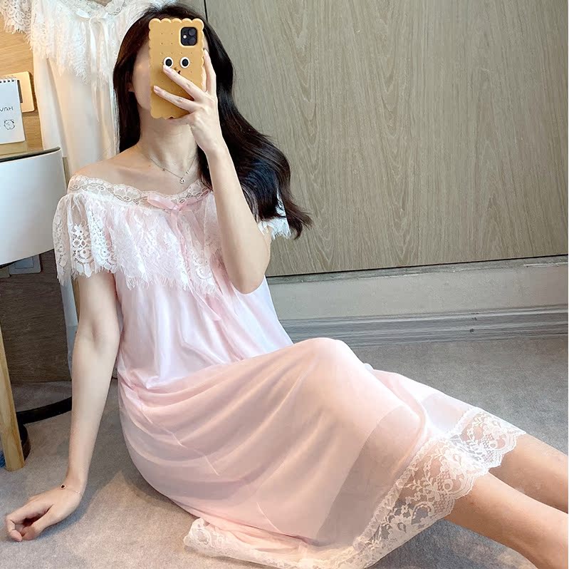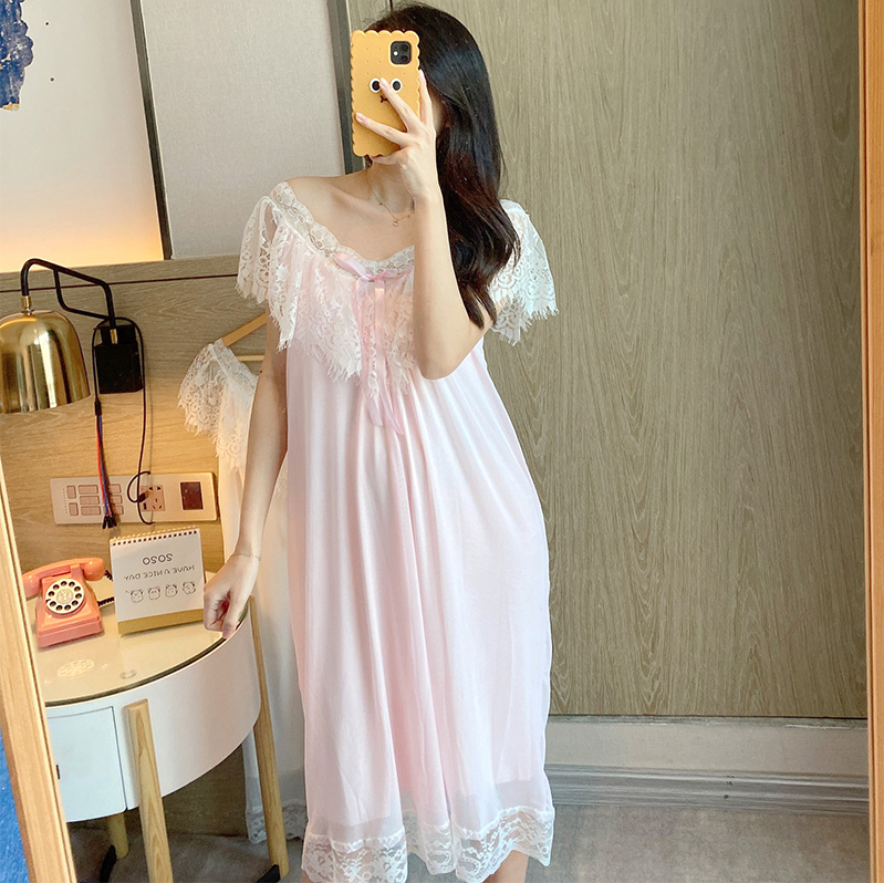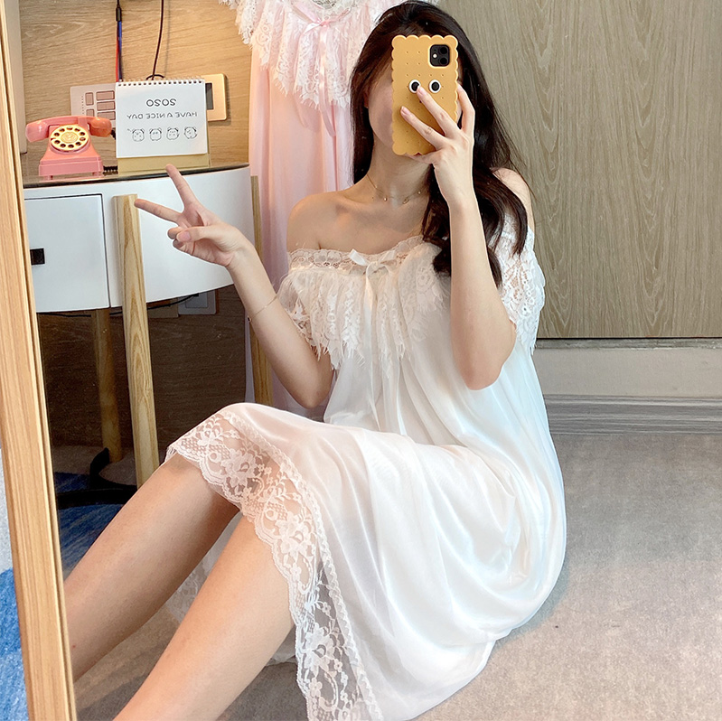 Night dress Princess style Court fairy style Private sexy temptation with chest pad lace hot pajama skirt women's summer