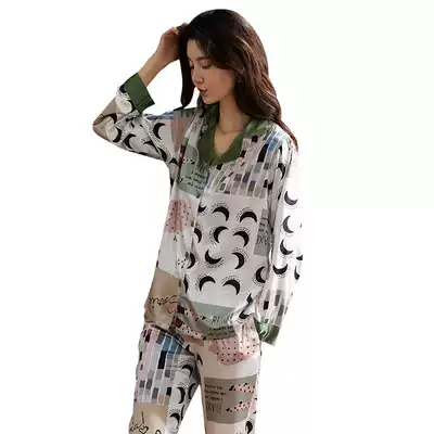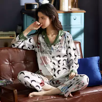 Antarctic pajamas women's summer ice silk long sleeve home clothing thin long sleeve simulation silk leisure spring and autumn two-piece set