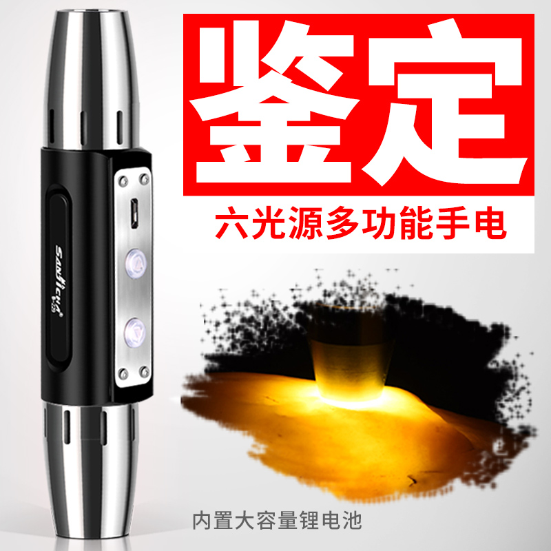 Professional Glare Shine Jade Flashlight Tricolour 365 Purple Light Charge Exclusive Identification Amber Honey Wax for Playing Jewelry