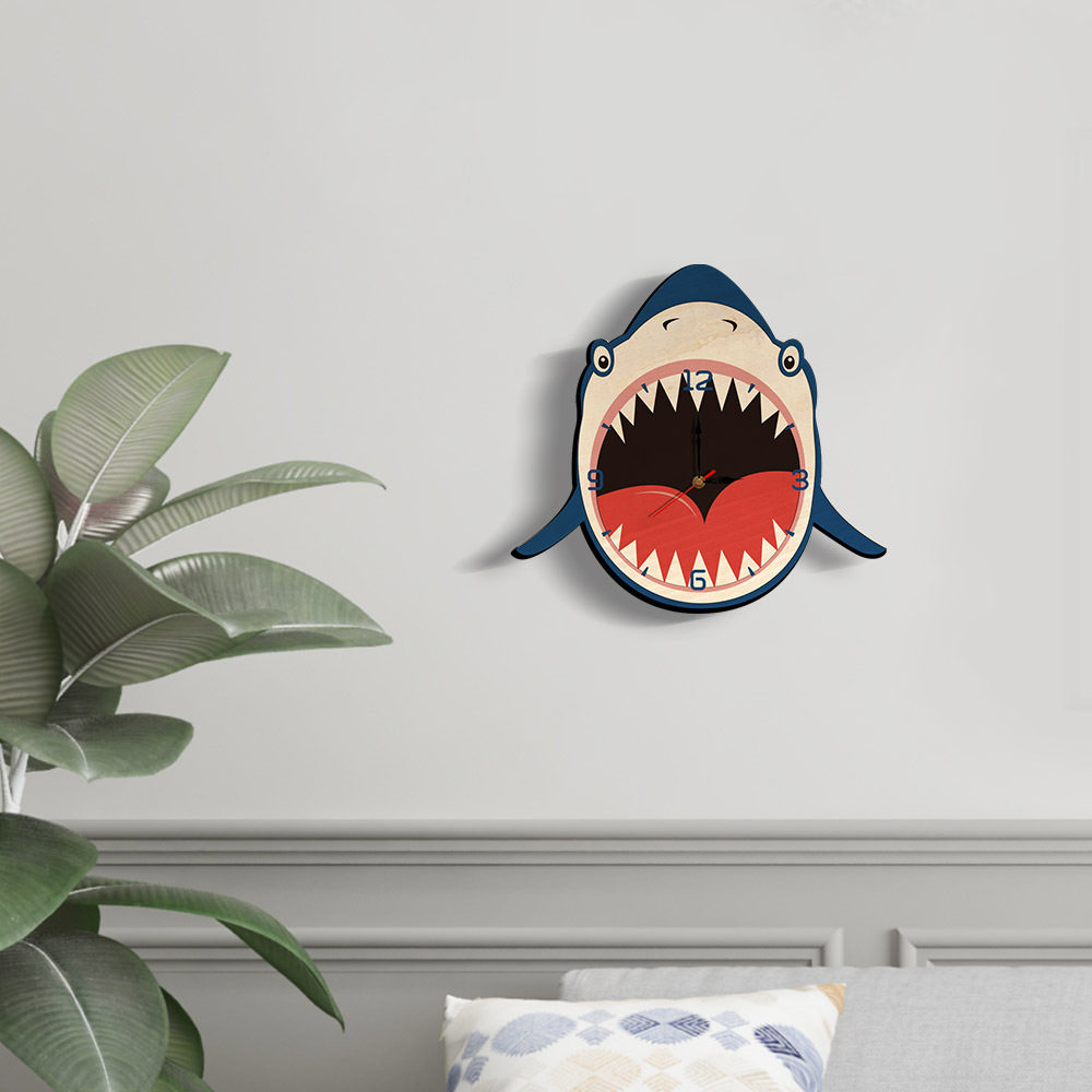 Shark Wood Wall Clock Kids Kindergarten Creative Cartoon Clock Bedroom Living Room Kids Room Wall Decoration Clock